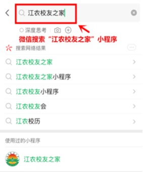 一、微信扫描二维码或者直接搜索“江农校友之家”小程序,进入“江农校友之家”小程序。