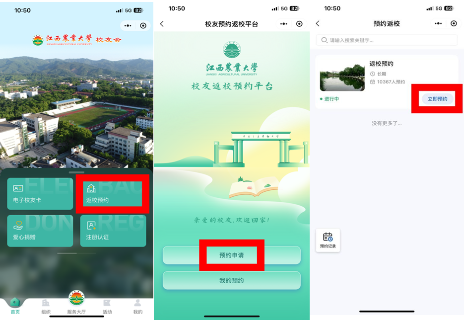 二、点击小程序首页—【返校预约】提交返校预约申请